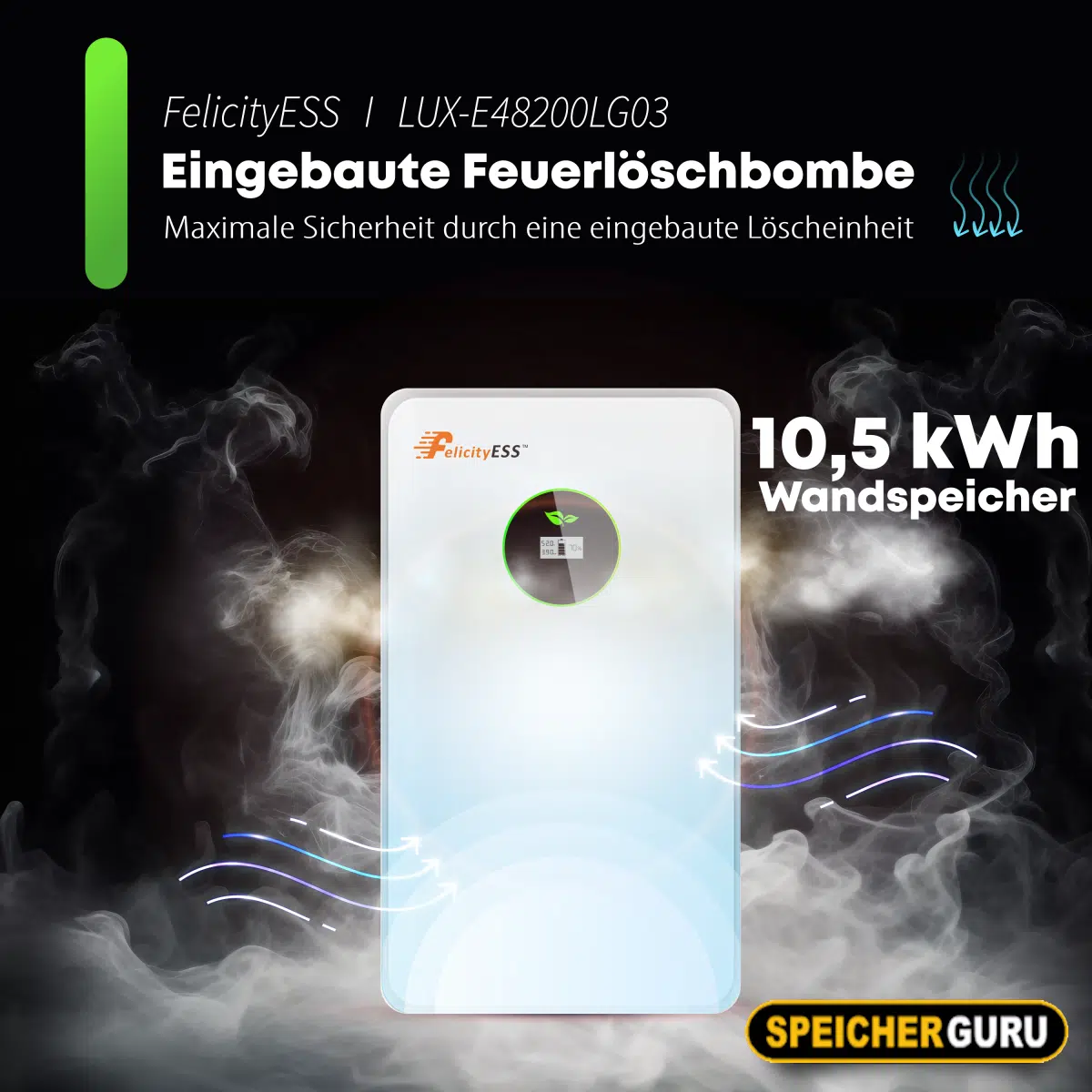 Dieser Batteriespeicher basiert auf der fortschrittlichen Lithium-Eisenphosphat-Technologie (LiFePO4). Diese zeichnet sich nicht nur durch ihre Umweltfreundlichkeit aus, sondern auch durch eine überragende Sicherheit und Langlebigkeit im Vergleich zu älteren Batterietypen. Die stabile Kristallstruktur macht LiFePO4-Zellen resilienter gegen Überladung und hohe Temperaturen, wodurch das Risiko von Überhitzung und Bränden minimiert wird. Zusätzlich verfügt der Felicity LUX-E-48200LG03 über eine integrierte Löschbombe und eine Schutzart von IP21, was ihn zu einer der sichersten Optionen für private Haushalte macht.