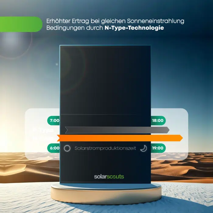 - Bifaziale Technologie: Erzeugt bis zu 20% zusätzliche Leistung auf der Rückseite der Module, ideal für diverse Installationen.