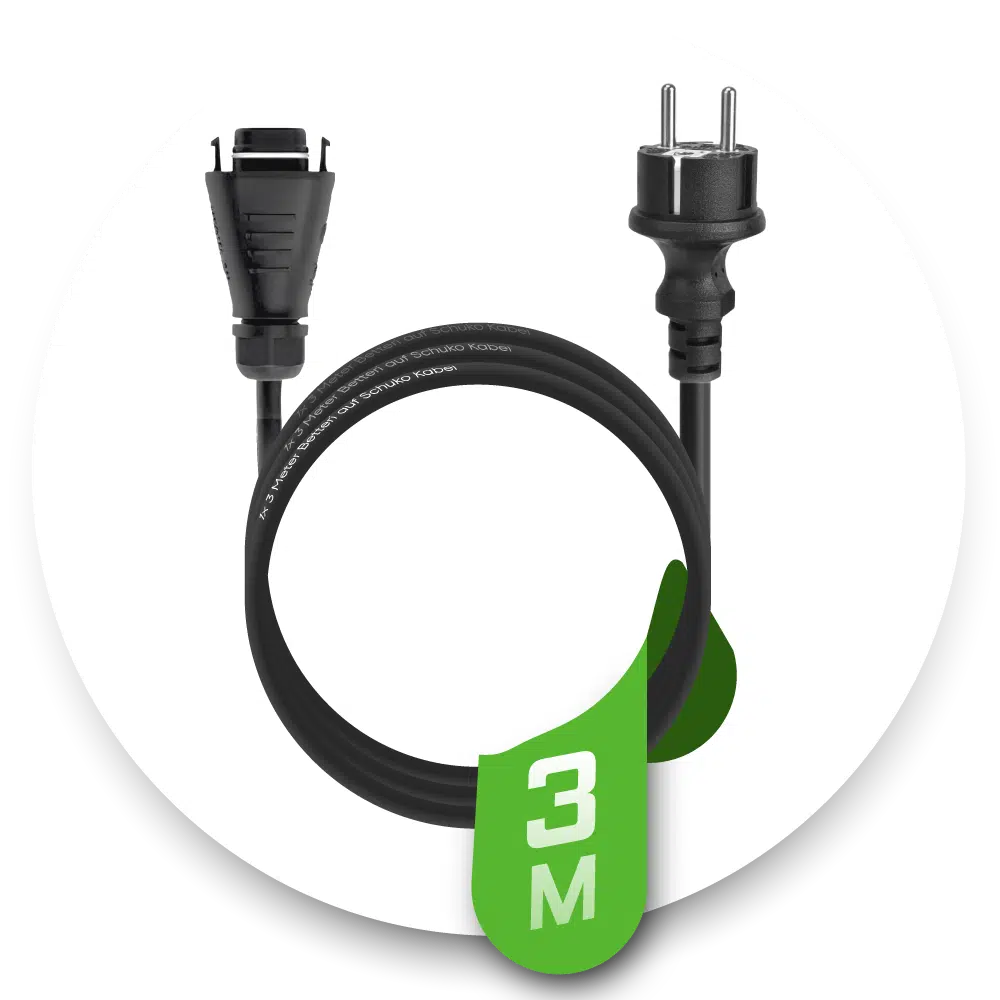 Das 3M AC-Netzkabel mit HMS Hoymiles Terrain Anschluss und Schuko-Stecker (CEE 7/7) IP44 wurde speziell für Mikro-Wechselrichter der Hoymiles HMS-Serie konzipiert. Es ist die perfekte Ergänzung für Ihr Balkonkraftwerk oder jedes andere PV-System. Mit seinem umfassenden UV-Schutz, einer Anschlussleistung von 300 V/12 A und einer hohen Flexibilität ist es ideal für den dauerhaften Außeneinsatz geeignet. Erleben Sie optimierte Leistung und maximale Sicherheit, die Ihr Solarsystem verdient.