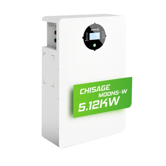 - Batteriespeicher: Chisage MOON5-W, LiFePO₄, 51,2 V / 100 Ah, 5,12 kWh nutzbare Kapazität, IP21 Schutzklasse
