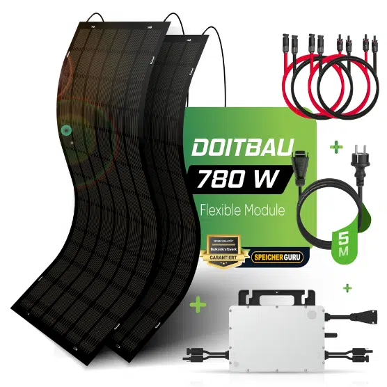 Mit dem 780W Balkonkraftwerk inklusive flexibler doitBau DB390FLEX Solarmodule setzen Sie auf Effizienz, Ästhetik und zukunftssichere Technologie – perfekt für die eigene Energiewende direkt am Balkon oder Dach.
