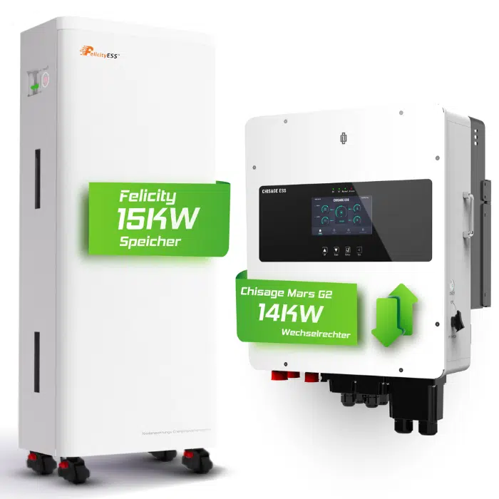 Das Chisage/Felicity Komplettset vereint den innovativen Mars-14G2-LE Hybrid-Wechselrichter mit dem hochkapazitiven Felicity LUX-Y-48300LG01 LiFePO4-Batteriespeicher. Diese Premium-Energielösung wurde speziell für anspruchsvolle On-Grid, Off-Grid und USV-Anwendungen konzipiert und bietet eine zuverlässige, flexible und nachhaltige Stromversorgung für private Haushalte und gewerbliche Einrichtungen.