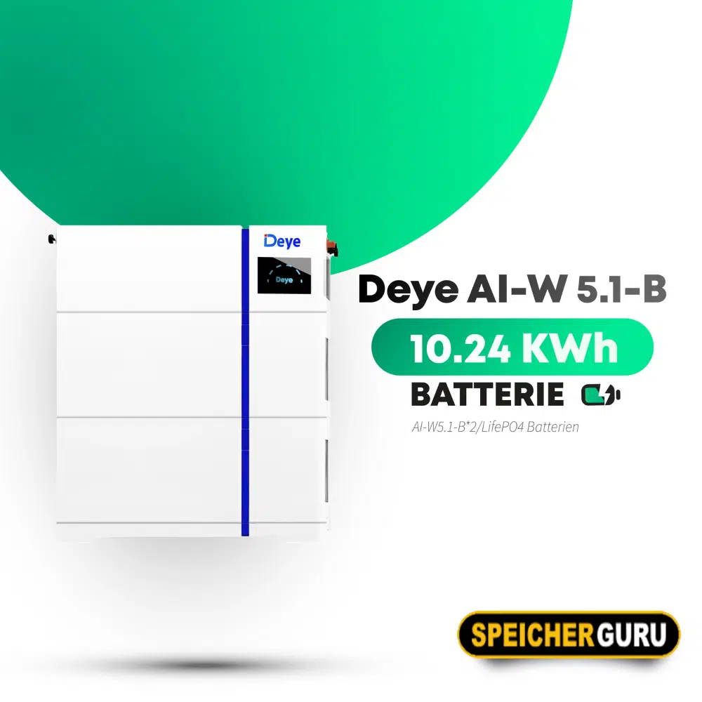 Der Deye AI-W5.1-B Batteriespeicher mit 10,24 kWh bietet eine hochmoderne und zuverlässige Lösung für die Speicherung Ihrer Solarenergie. Dieses System besteht aus zwei AI-W5.1-B Modulen, die zusammen eine Nennkapazität von 10,24 kWh liefern und Ihren Eigenverbrauch signifikant erhöhen.