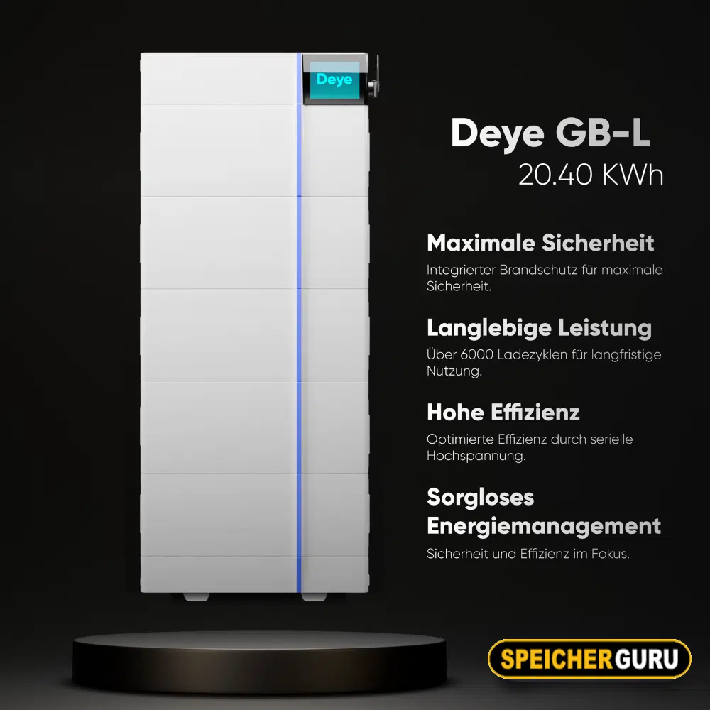 Das Deye GB-L-20.40 kWh Hochvoltspeicher Set ist eine innovative und robuste Lösung für Ihre Off-Grid-Solarstromversorgung. Dieses modulare Batteriespeicher-System bietet höchste Flexibilität und Zuverlässigkeit für anspruchsvolle Anwendungen, von abgelegenen Standorten bis hin zu komplexen Mikronetzen. Mit seiner fortschrittlichen LiFePO4-Technologie und einer nutzbaren Energie von 20.45 kWh gewährleistet es eine stabile und langfristige Energieversorgung.