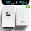 Das Deye Komplettset revolutioniert Ihr Energiemanagement mit einer leistungsstarken Kombination aus dem Deye SUN-15K-SG05LP3-EU-SM2 Hybridwechselrichter und zwei Deye AI-W5.1-B Lithium-Eisenphosphat-Batteriespeichern, die zusammen eine Speicherkapazität von 10,2 kWh bieten.