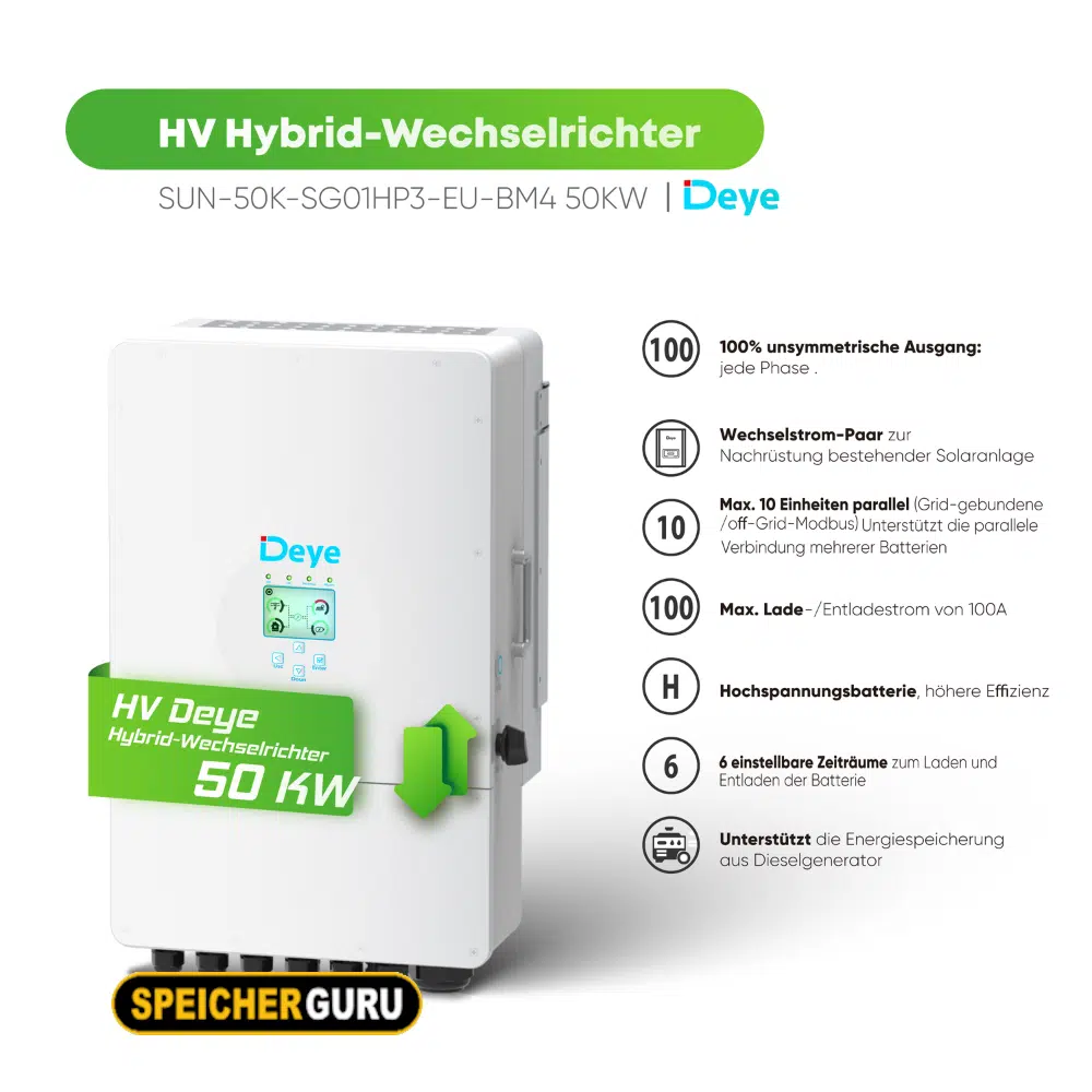 - 1 x Deye SUN-50K-SG01HP3-EU-BM4 Hochvolt Hybridwechselrichter