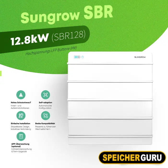 Die Sungrow SBR Hochspannungs LFP Batterie 12,8kW (SBR128) ist eine zukunftsweisende Lösung für die Speicherung erneuerbarer Energien in Ihrem Zuhause. Mit einer nutzbaren Kapazität von 12,8 kWh und der fortschrittlichen Lithium-Eisenphosphat (LFP) Technologie bietet dieser Speicher höchste Sicherheit und Umweltfreundlichkeit.
